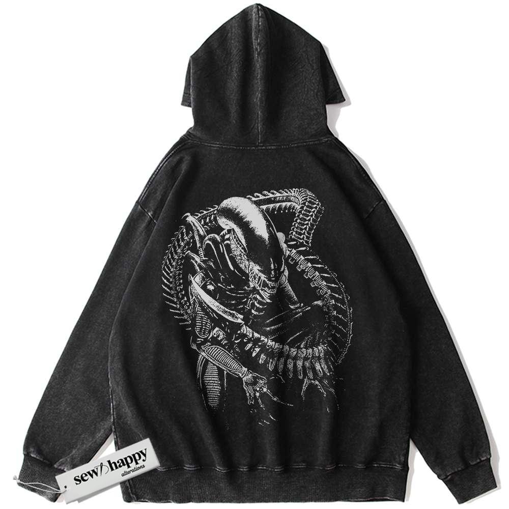 Wash Hoodie Xenomorph Hoodie, Alien vs Predator Hoodie, Movie Hoodie, Vintage Hoodie