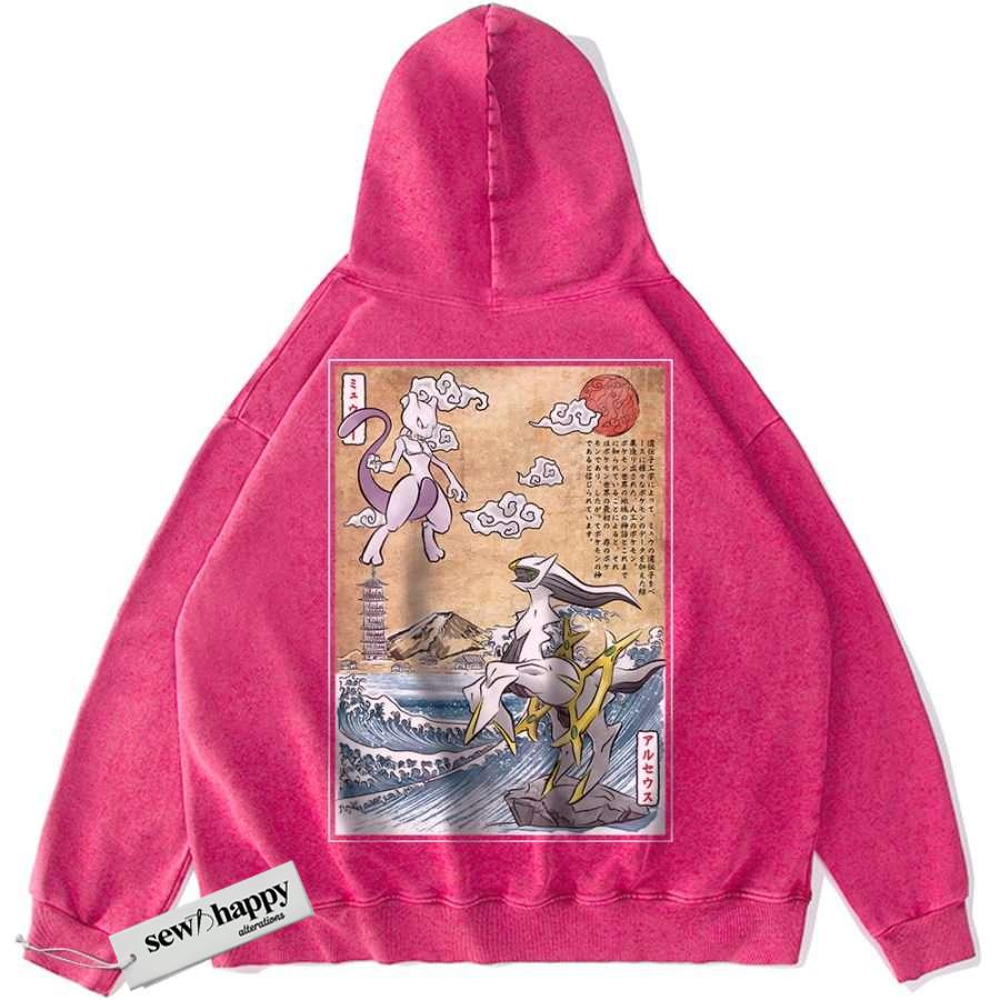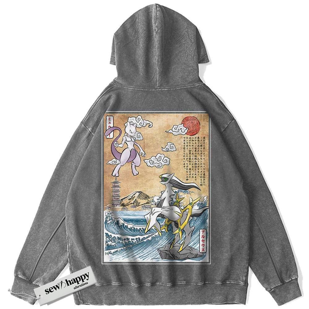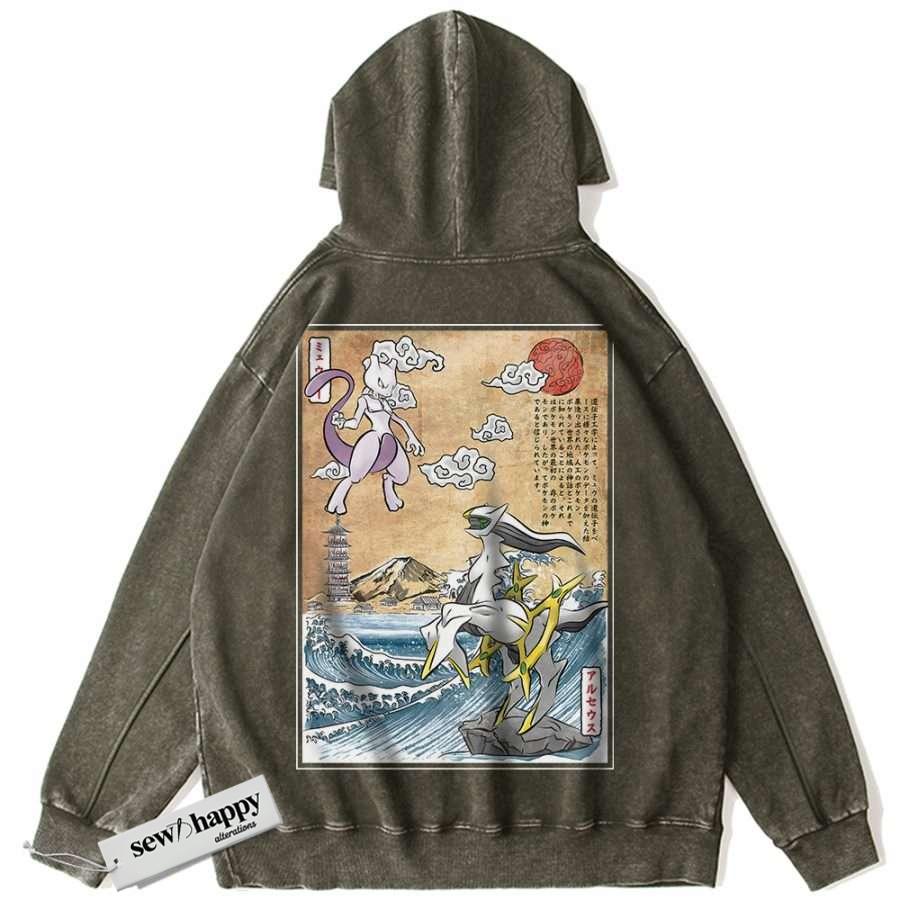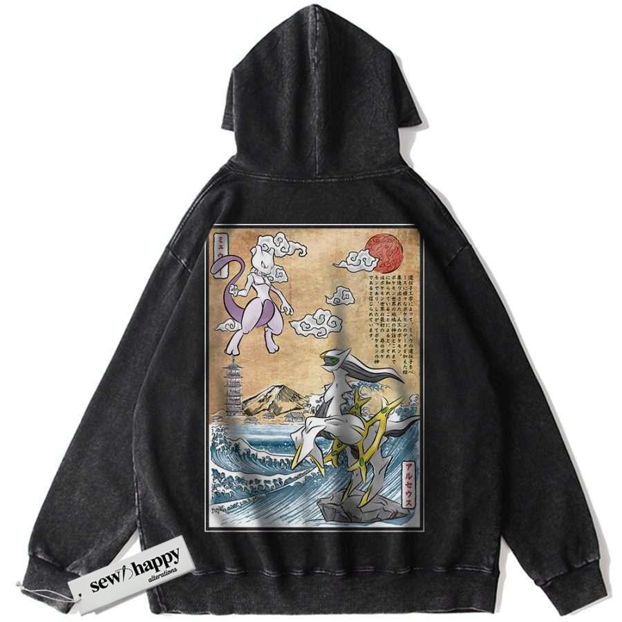 Wash Hoodie Arceus vs Mewtwo Hoodie, Pokemon Hoodie, Anime Hoodie, Vintage Hoodie