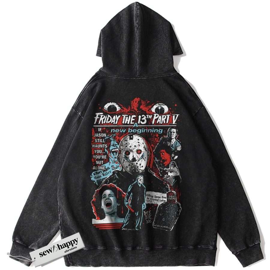 Wash Hoodie Friday the 13th Hoodie, Halloween Hoodie, Horror Hoodie, Vintage Hoodie