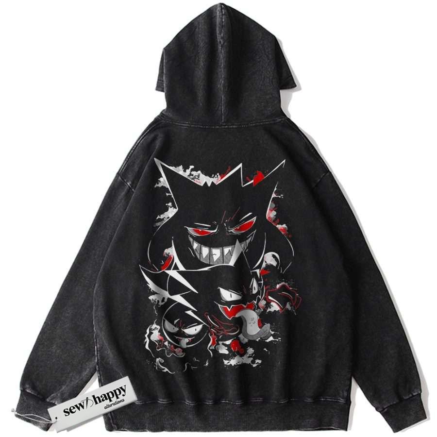 Wash Hoodie Gengar Gatsly Haunter Hoodie, Pokemon Hoodie, Anime Hoodie, Vintage Hoodie