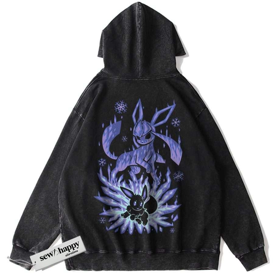 Wash Hoodie Glaceon Hoodie, Eevee Hoodie, Pokemon Hoodie, Anime Hoodie, Vintage Hoodie
