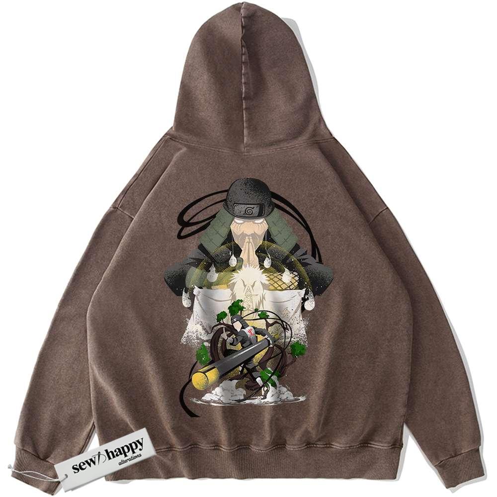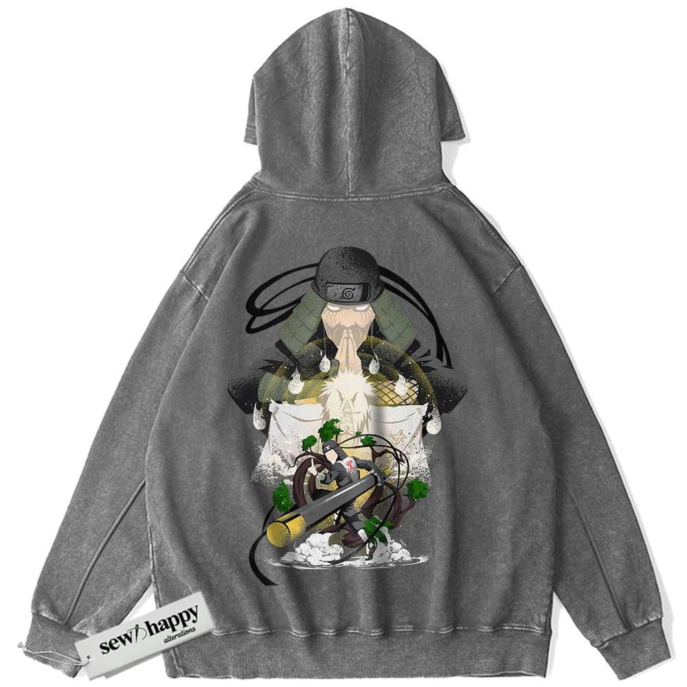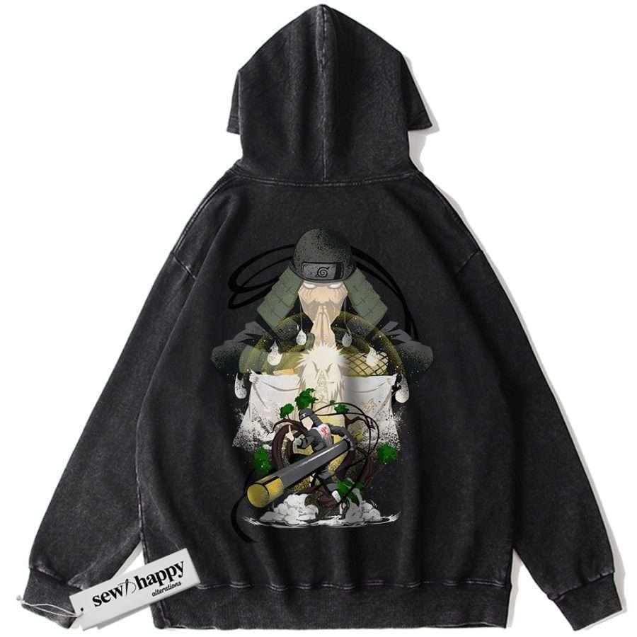 Wash Hoodie Hiruzen Sarutobi Hoodie, Naruto Hoodie, Anime Hoodie, Vintage Hoodie