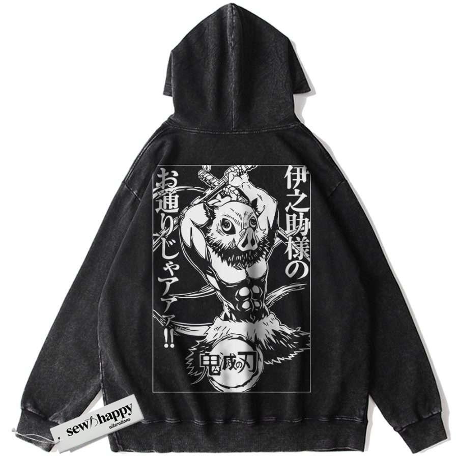Wash Hoodie Inosuke Hashibira Hoodie, Demon Slayer Hoodie, Anime Hoodie, Vintage Hoodie