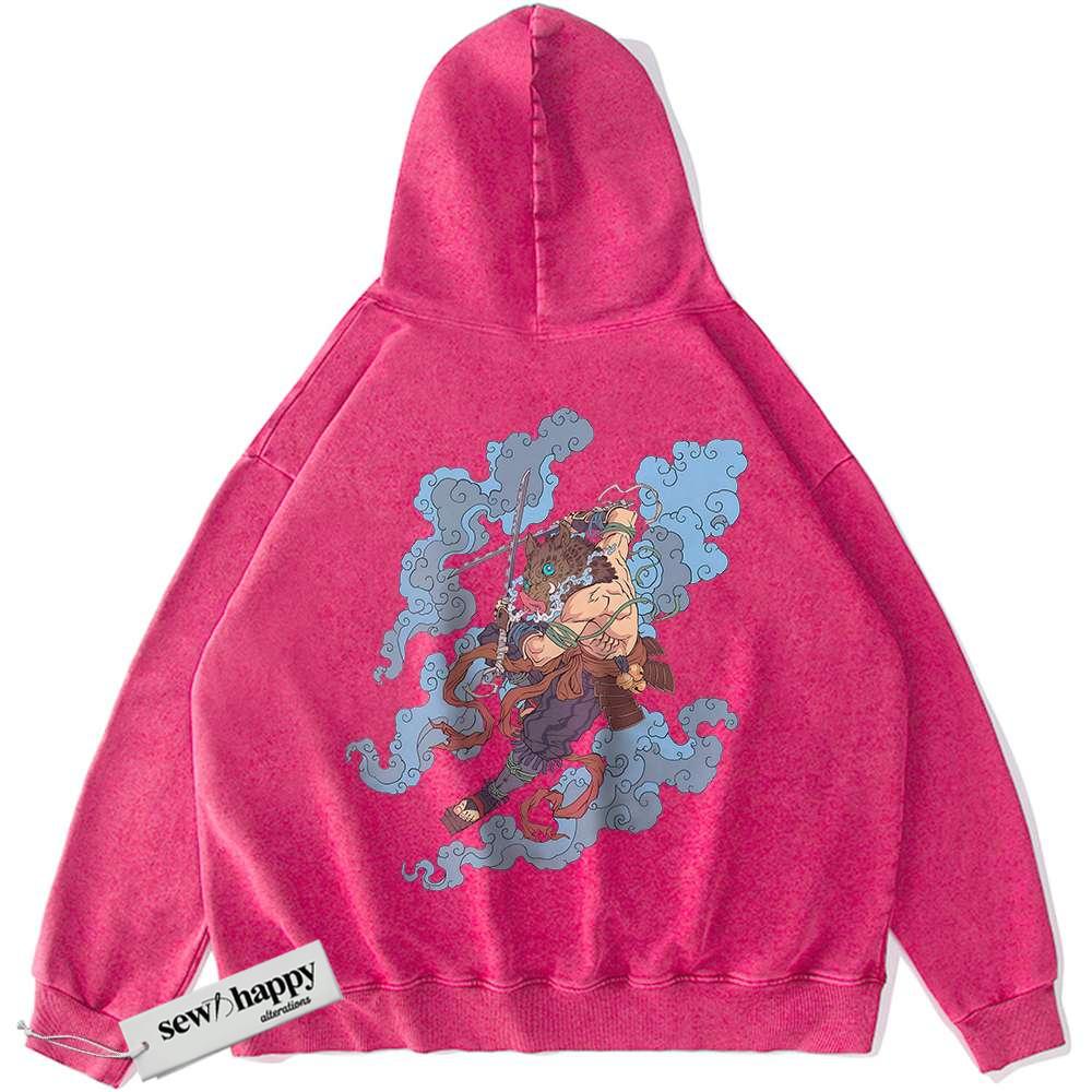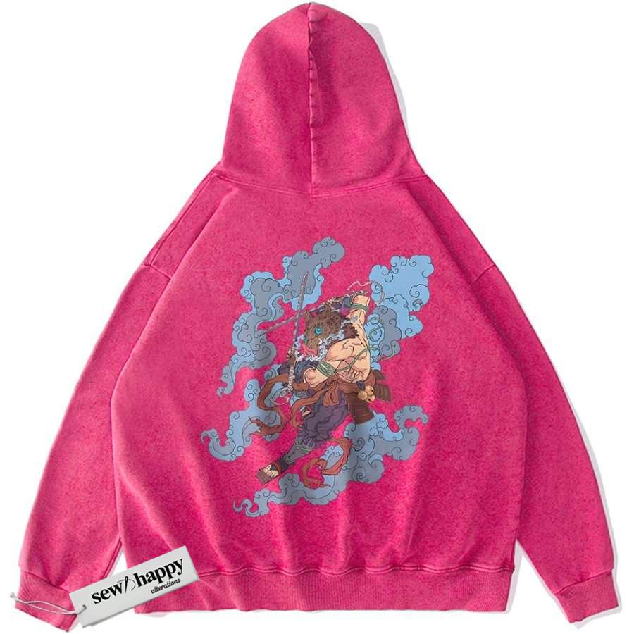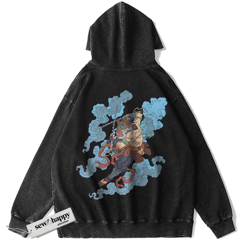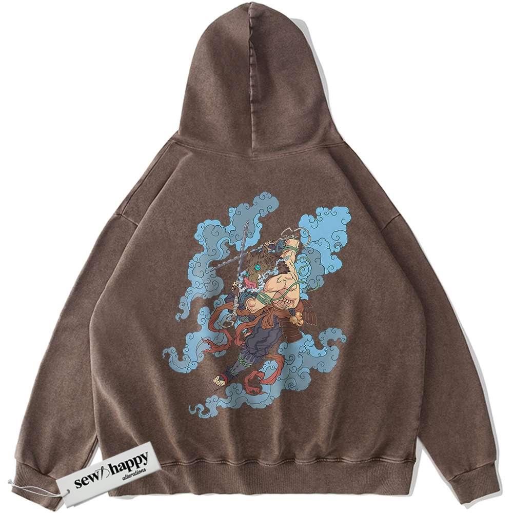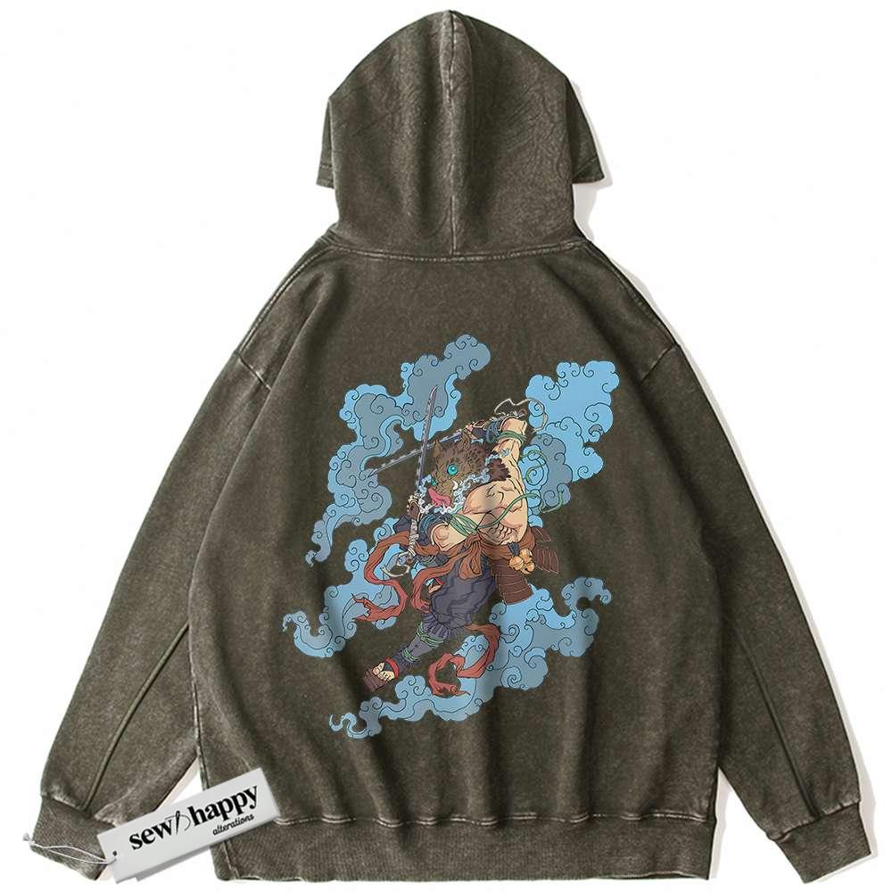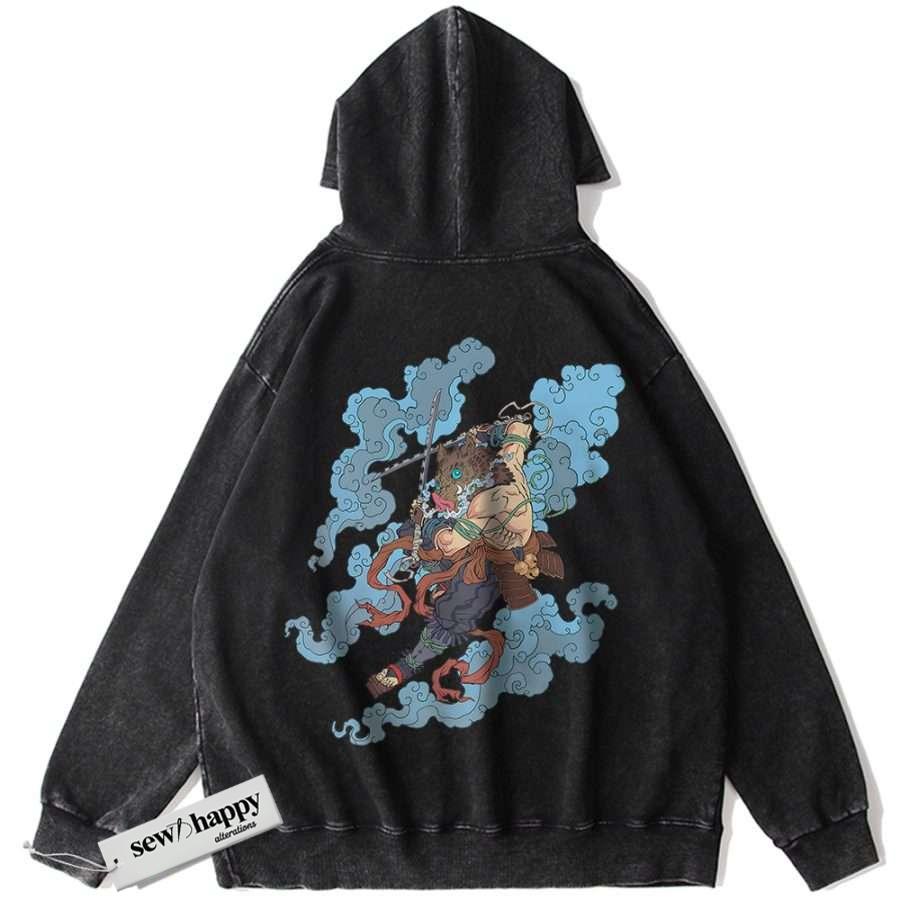 Wash Hoodie Inosuke Hashibira Hoodie, Demon Slayer Hoodie, Anime Hoodie, Vintage Hoodie
