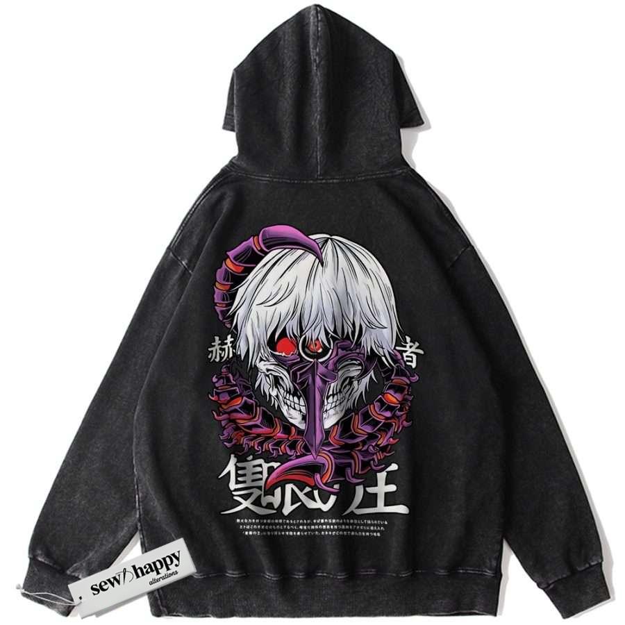 Wash Hoodie Ken Kaneki Hoodie, Tokyo Ghoul Hoodie, Anime Hoodie, Vintage Hoodie