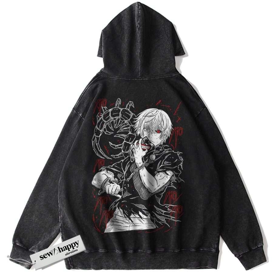 Wash Hoodie Ken Kaneki Hoodie, Tokyo Ghoul Hoodie, Anime Hoodie, Vintage Hoodie
