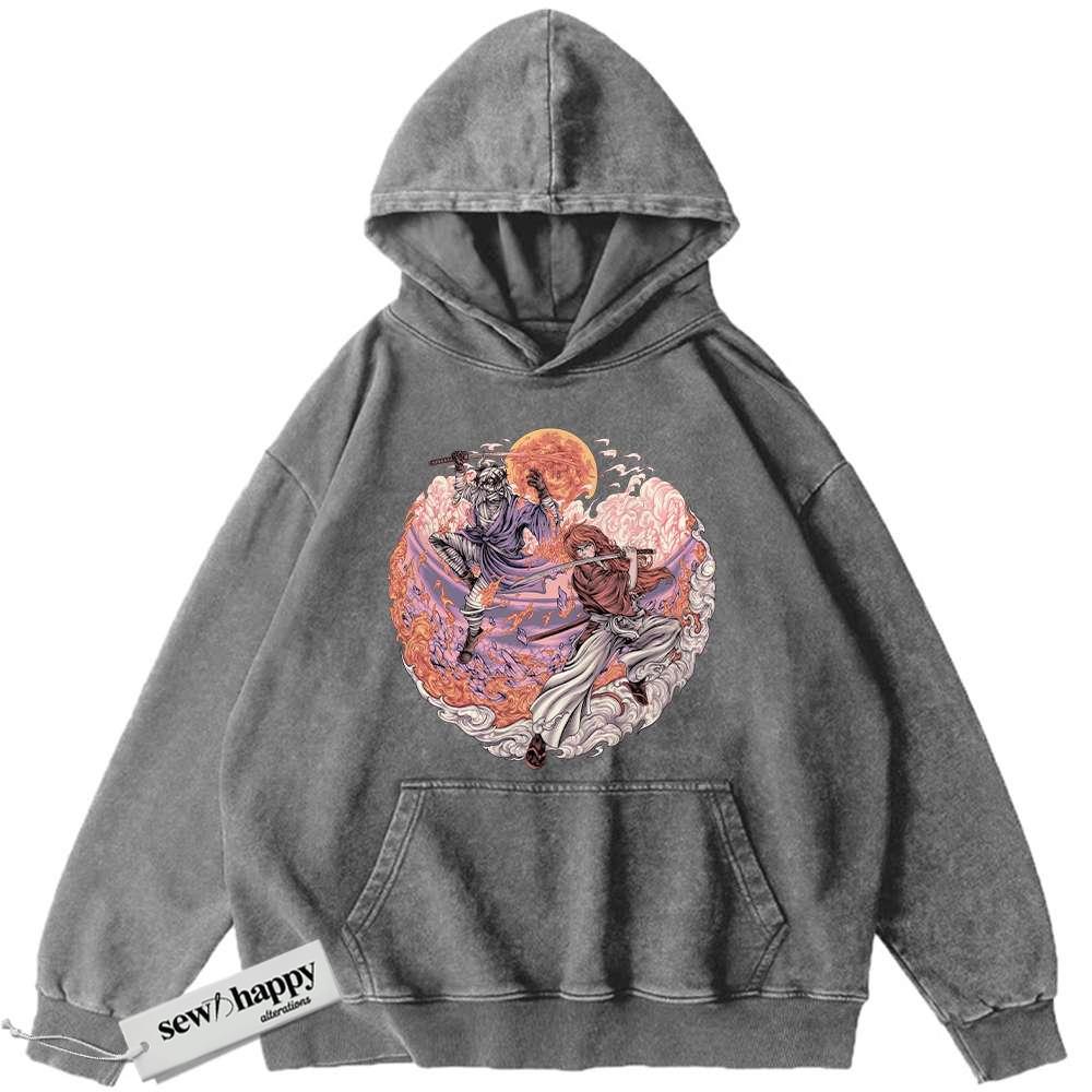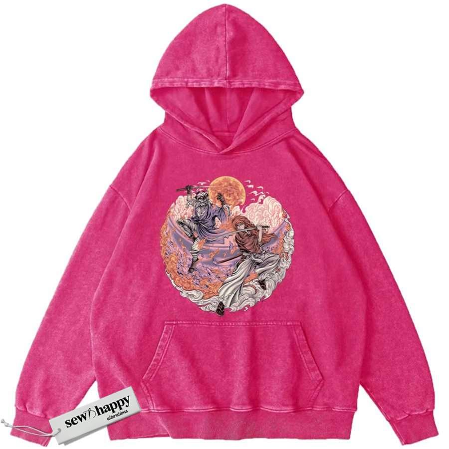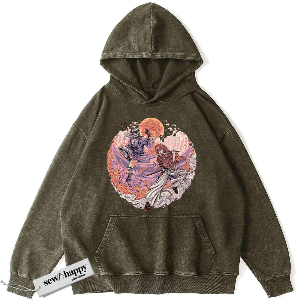 Wash Hoodie Kenshin Himura vs Shishio Makoto Hoodie, Rurouni Kenshin Hoodie, Anime Hoodie, Vintage Hoodie