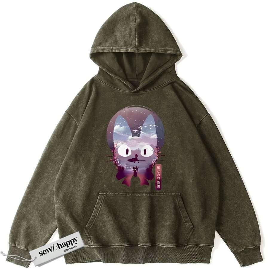 Wash Hoodie Kiki’s Delivery Service Hoodie, Studio Ghibli Hoodie, Anime Hoodie, Vintage Hoodie