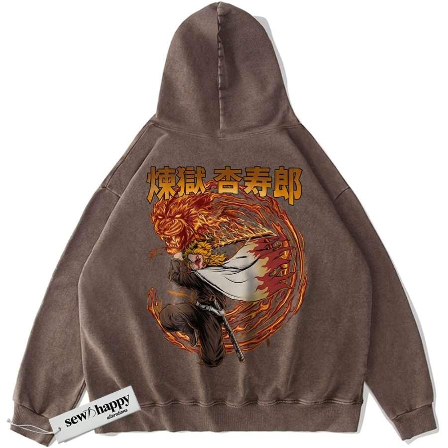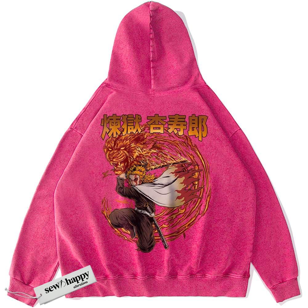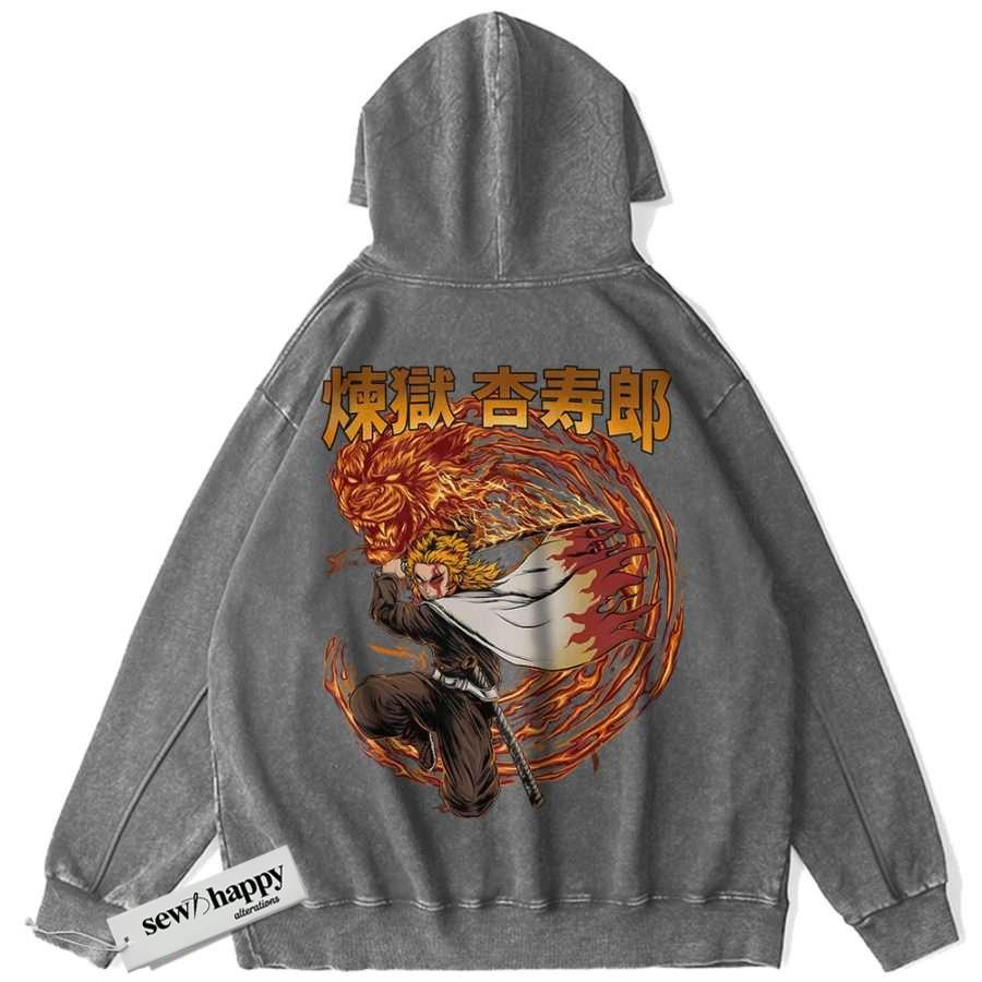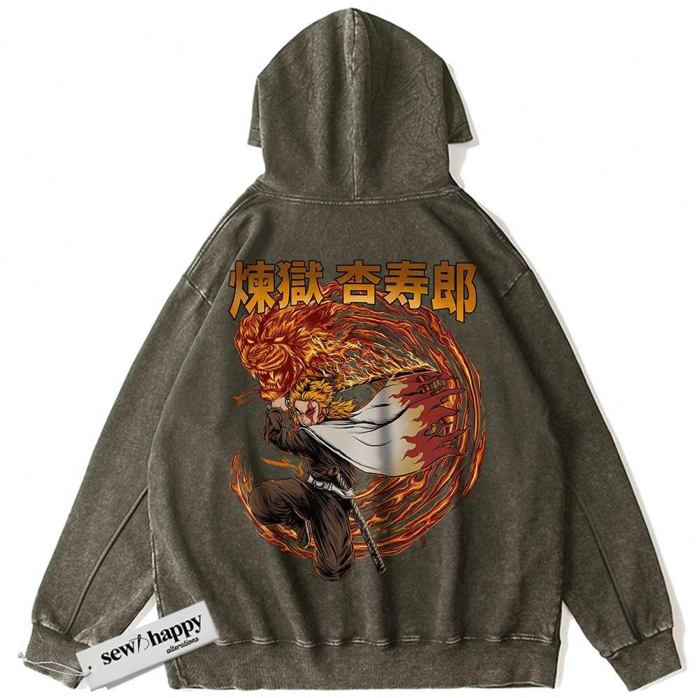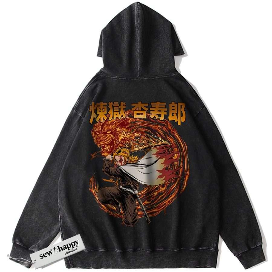 Wash Hoodie Kyojuro Rengoku Hoodie, Demon Slayer Hoodie, Anime Hoodie, Vintage Hoodie
