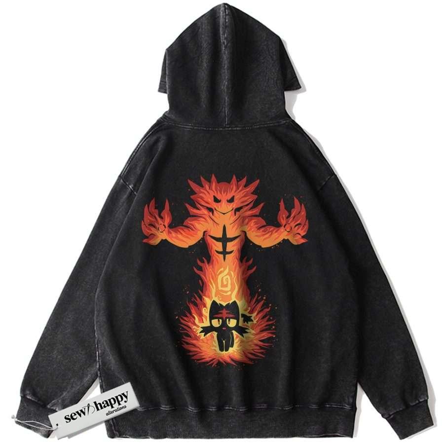 Wash Hoodie Litten Hoodie, Incineroar Hoodie, Pokemon Hoodie, Anime Hoodie, Vintage Hoodie