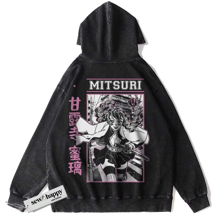 Wash Hoodie Mitsuri Kanroji Hoodie, Demon Slayer Hoodie, Anime Hoodie, Vintage Hoodie
