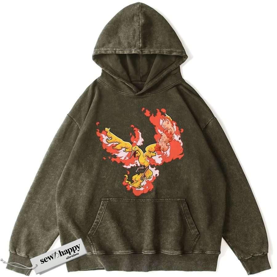 Wash Hoodie Moltres Hoodie, Pokemon Hoodie, Anime Hoodie, Vintage Hoodie