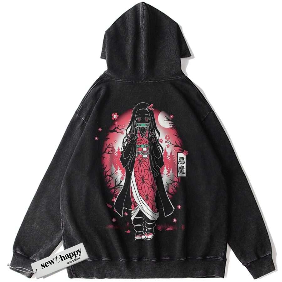 Wash Hoodie Nezuko Kamado Hoodie, Demon Slayer Hoodie, Anime Hoodie, Vintage Hoodie