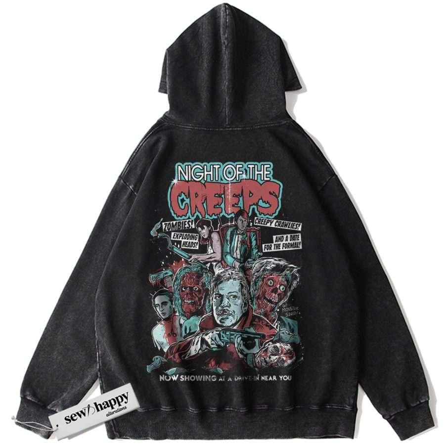 Wash Hoodie Night of the Creeps Hoodie, Halloween Hoodie, Horror Movie Hoodie, Vintage Hoodie