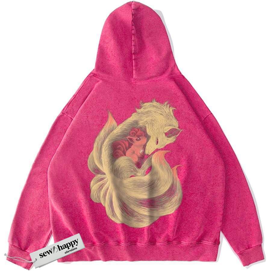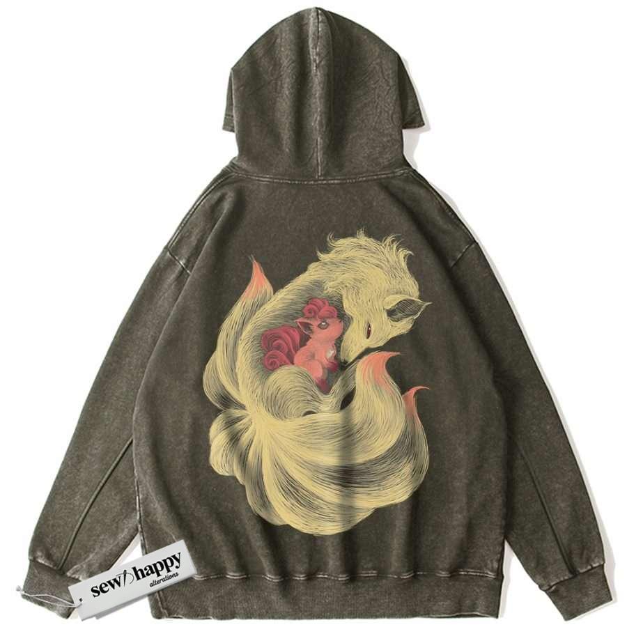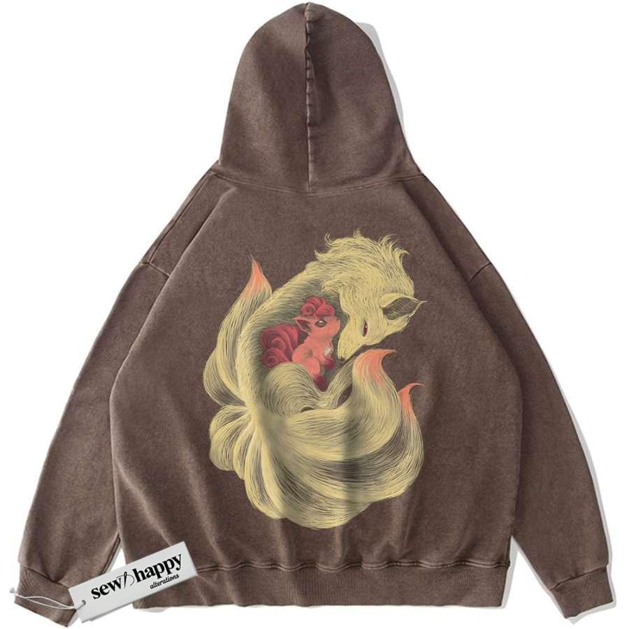 Wash Hoodie Ninetales Hoodie, Vulpix Hoodie, Pokemon Hoodie, Anime Hoodie, Vintage Hoodie