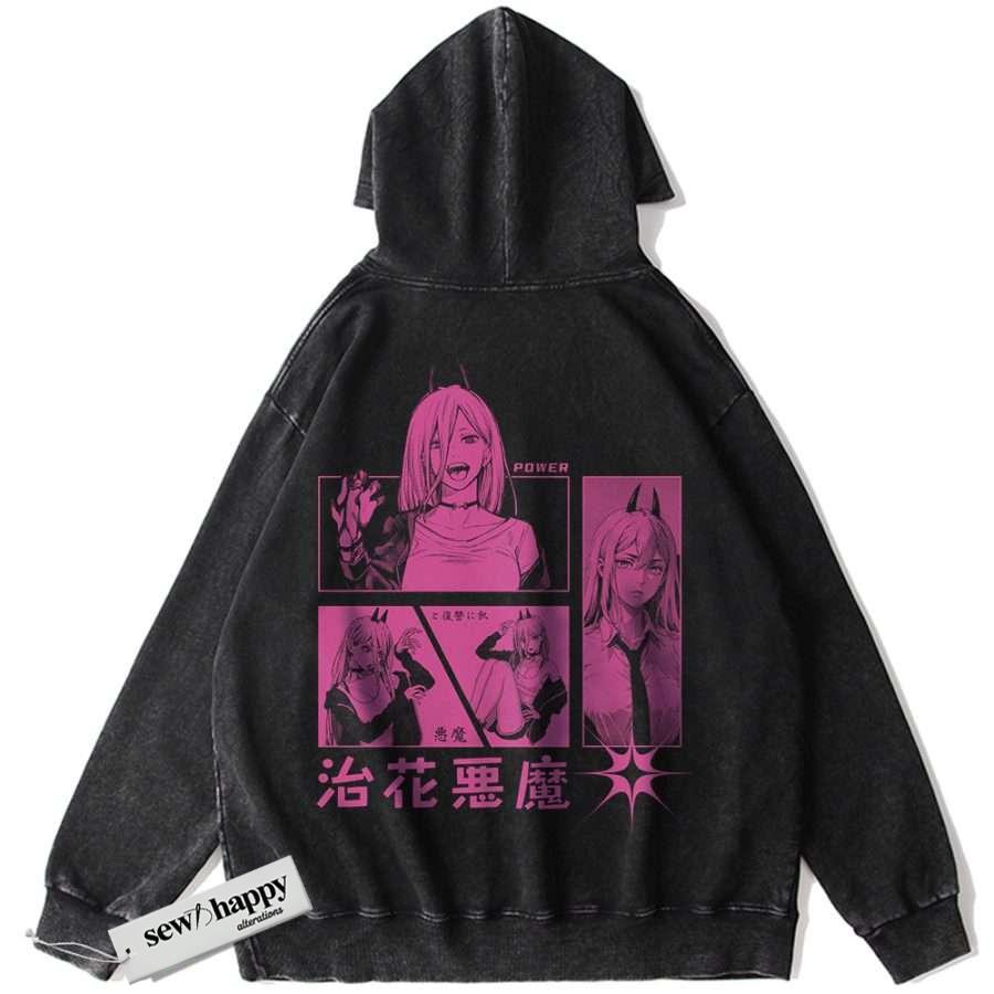 Wash Hoodie Power Hoodie, Chainsaw Man Hoodie, Anime Hoodie, Vintage Hoodie