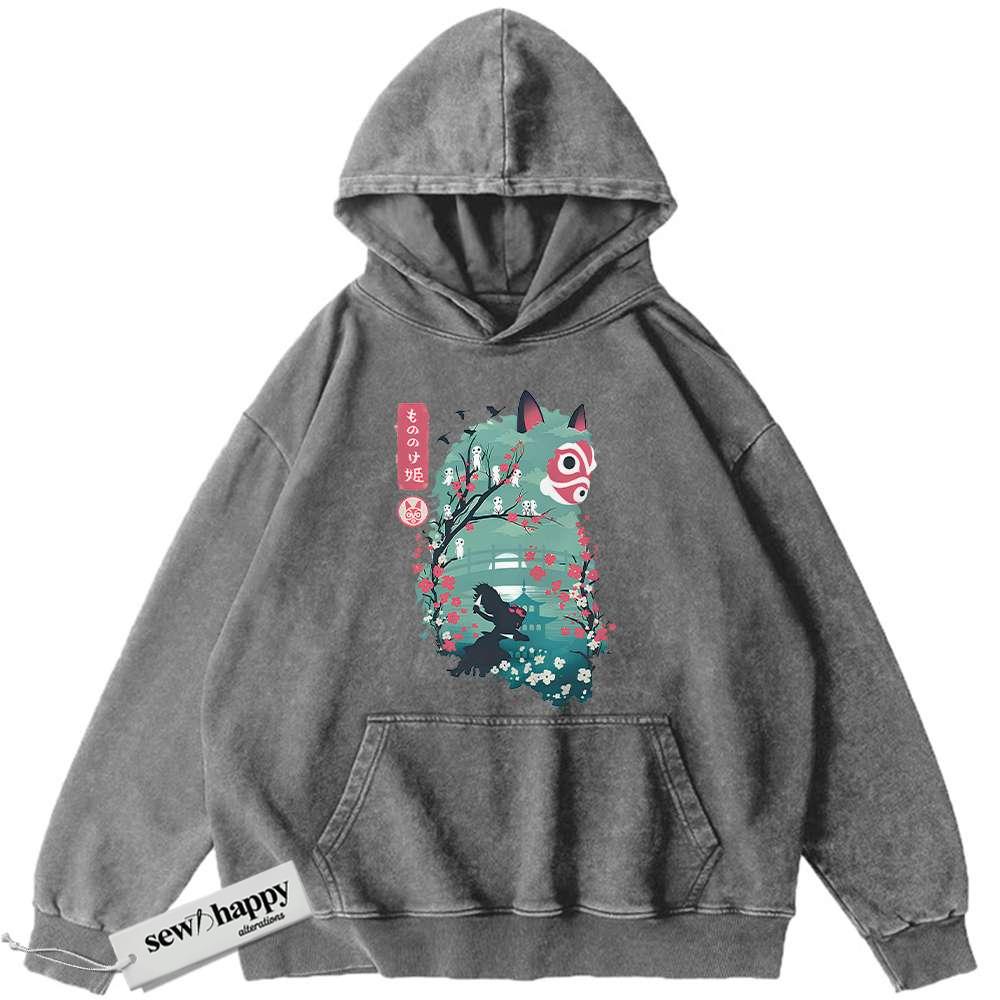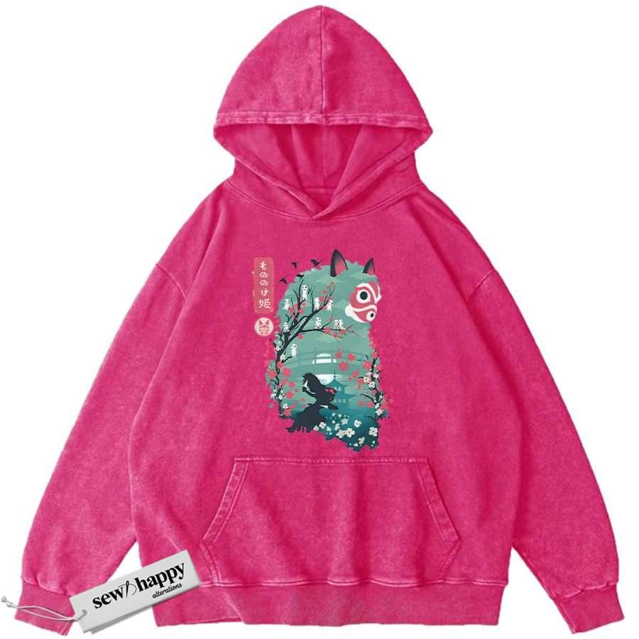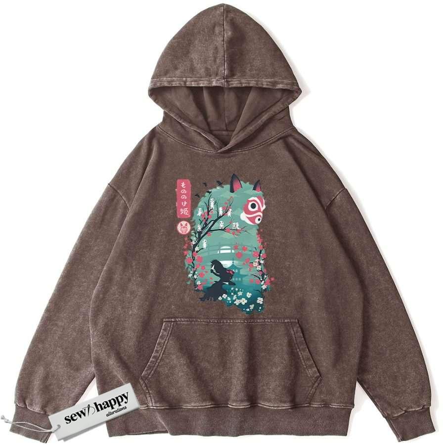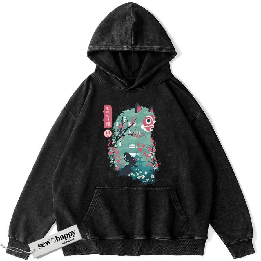 Wash Hoodie Princess Mononoke Hoodie, Studio Ghibli Hoodie, Anime Hoodie, Vintage Hoodie