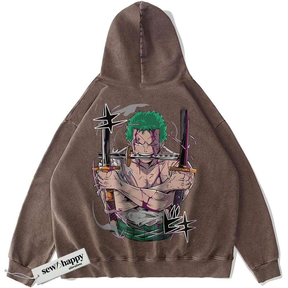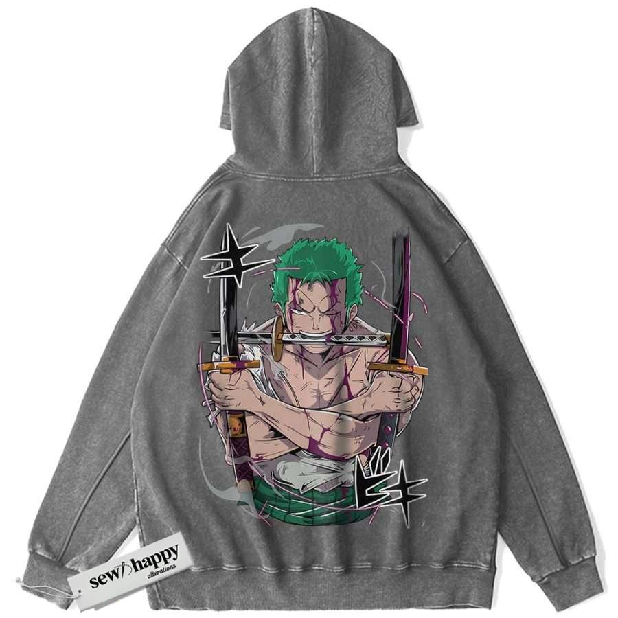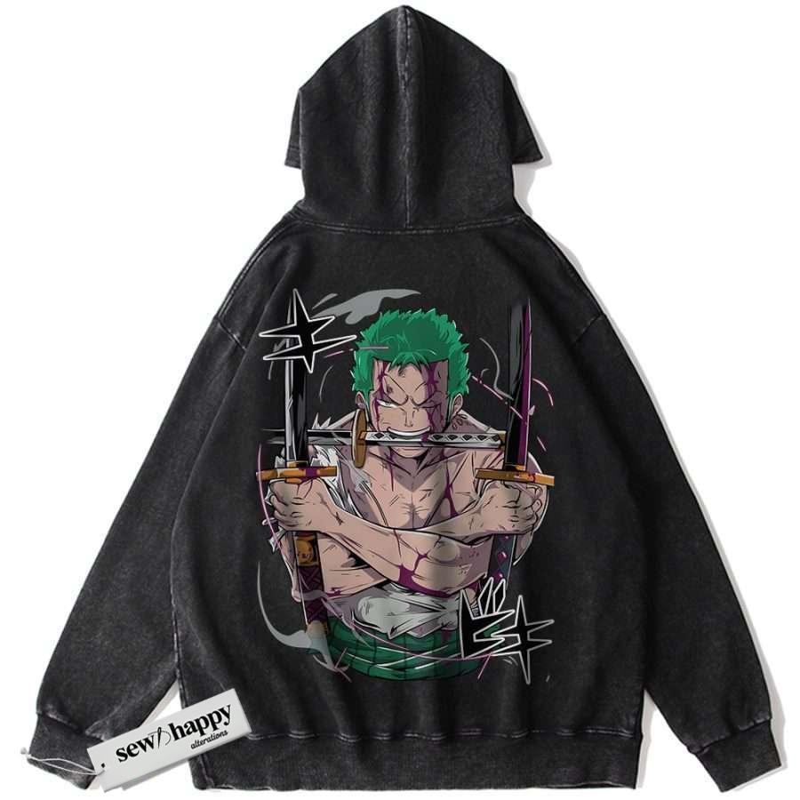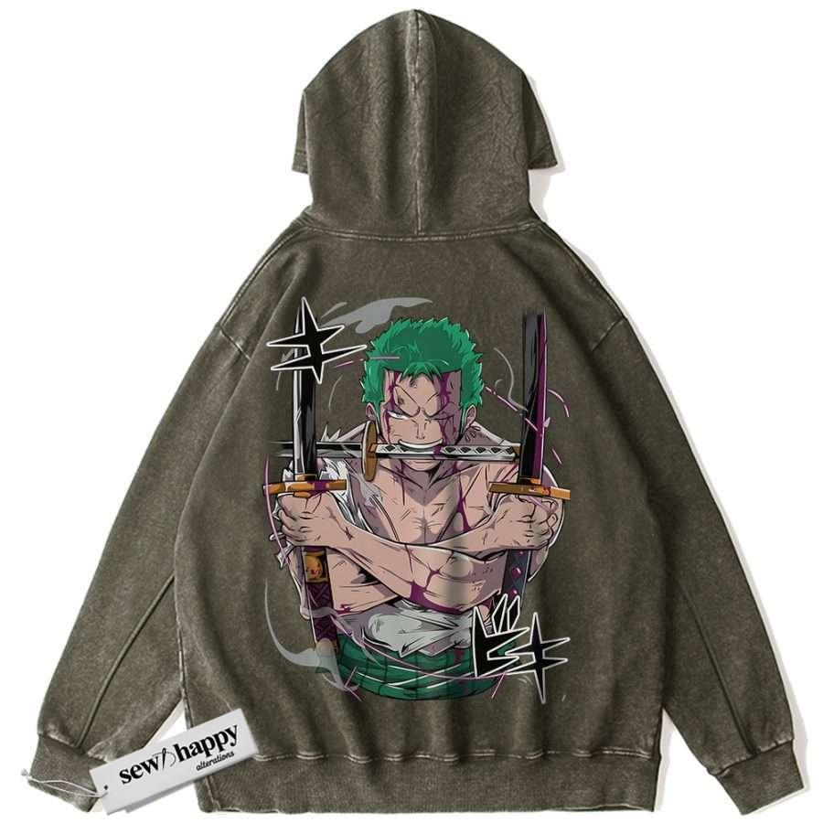 Wash Hoodie Roronoa Zoro Hoodie, One Piece Hoodie, Anime Hoodie, Vintage Hoodie
