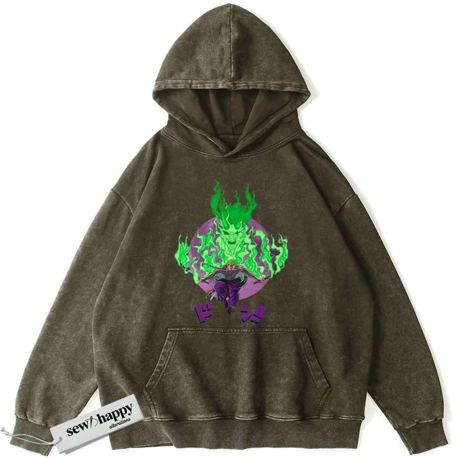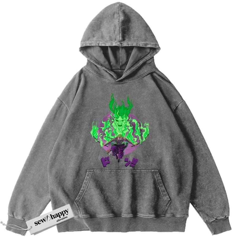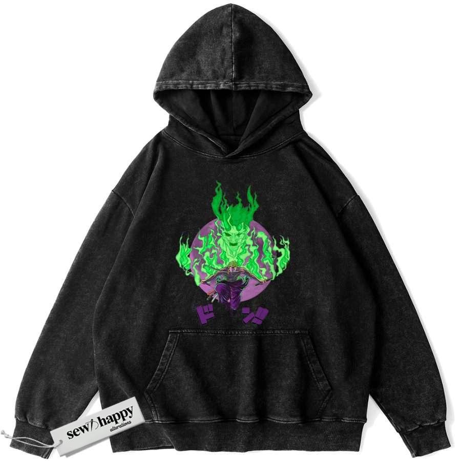Wash Hoodie Roronoa Zoro Hoodie, One Piece Hoodie, Anime Hoodie, Vintage Hoodie