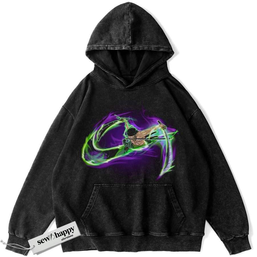 Wash Hoodie Roronoa Zoro Hoodie, One Piece Hoodie, Anime Hoodie, Vintage Hoodie