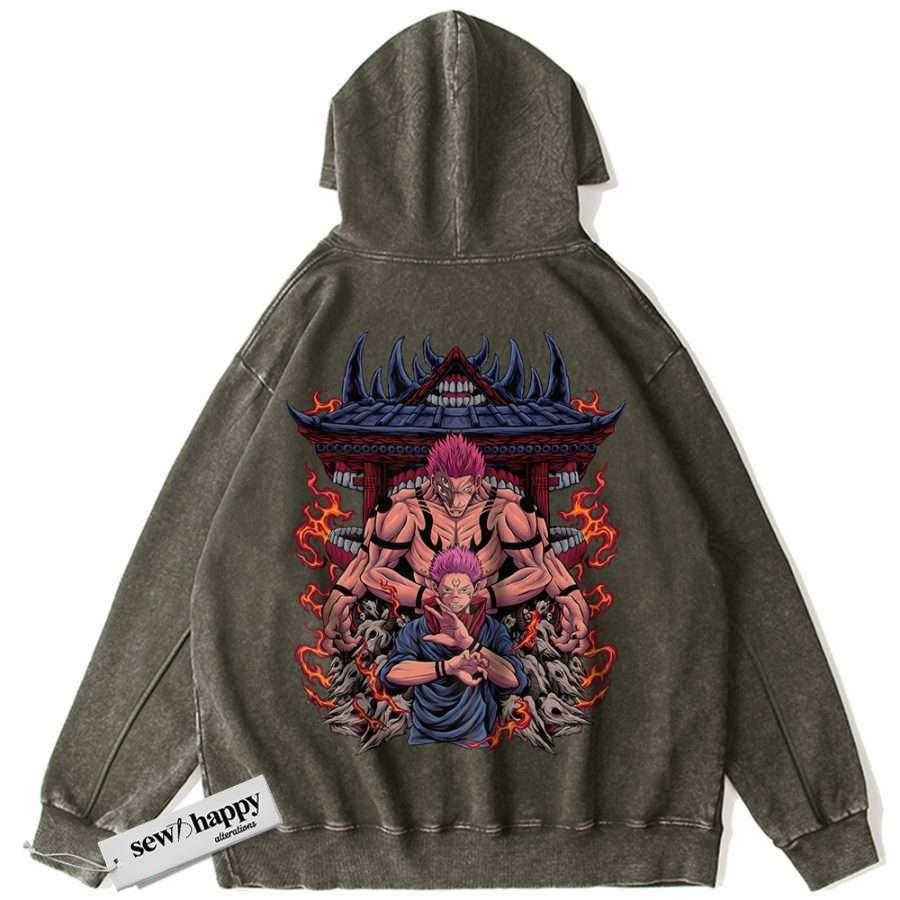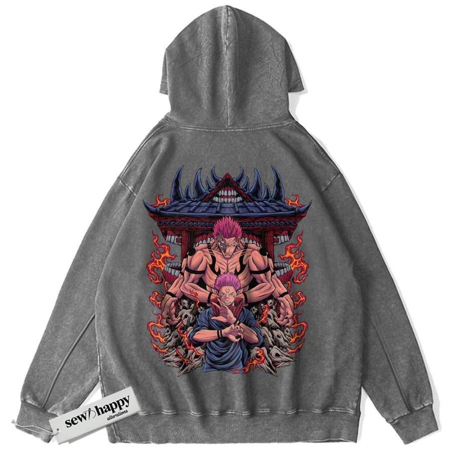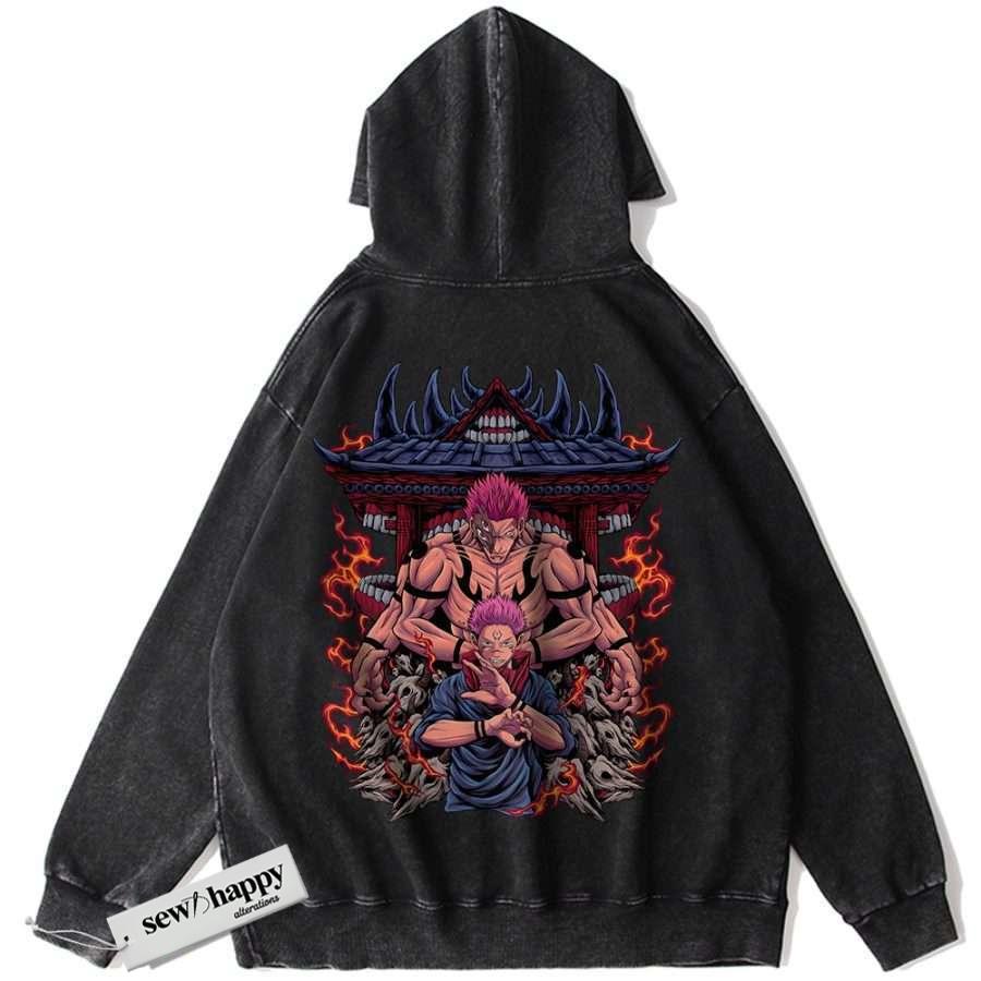 Wash Hoodie Ryomen Sukuna Hoodie, Jujutsu Kaisen Hoodie, Anime Hoodie, Vintage Hoodie