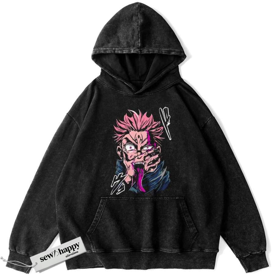 Wash Hoodie Ryomen Sukuna Hoodie, Jujutsu Kaisen Hoodie, Anime Hoodie, Vintage Hoodie