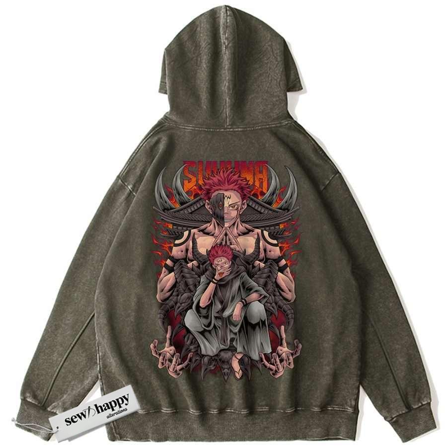 Wash Hoodie Ryomen Sukuna Hoodie, Jujutsu Kaisen Hoodie, Anime Hoodie, Vintage Hoodie