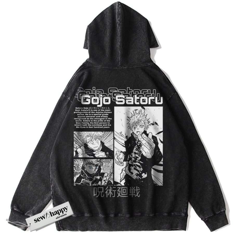 Wash Hoodie Satoru Gojo Hoodie, Jujutsu Kaisen Hoodie, Anime Hoodie, Vintage Hoodie