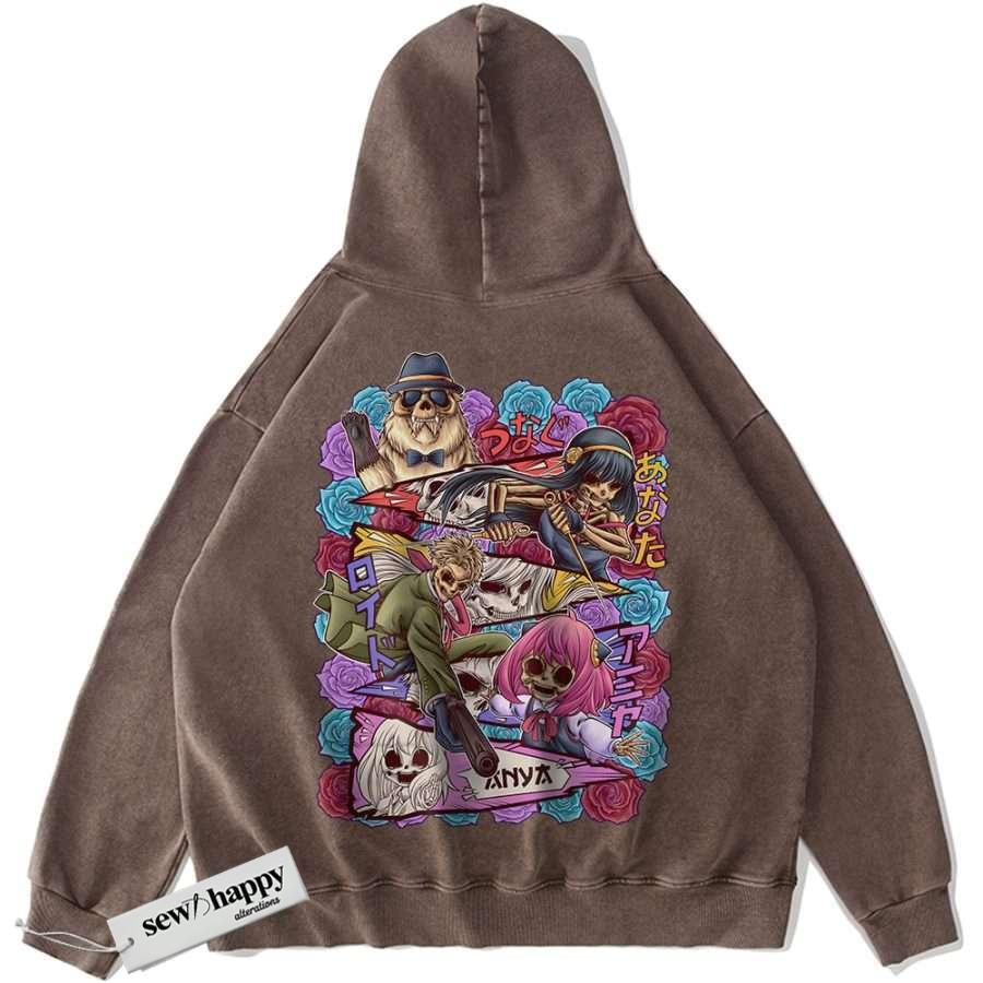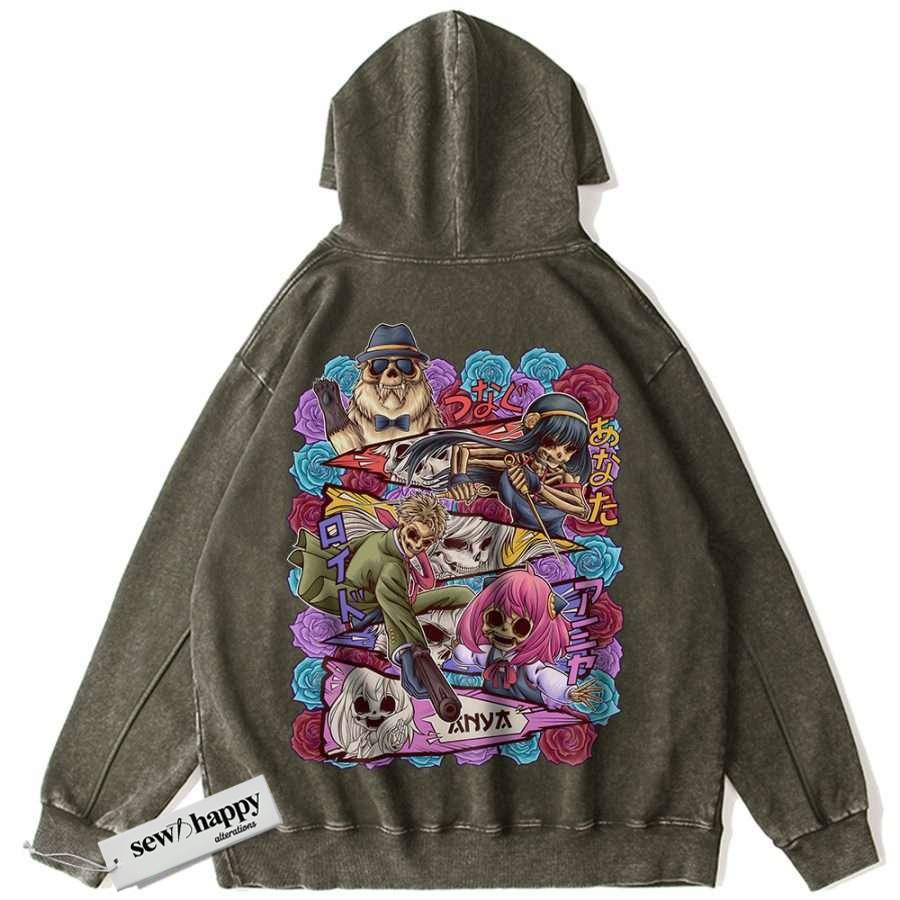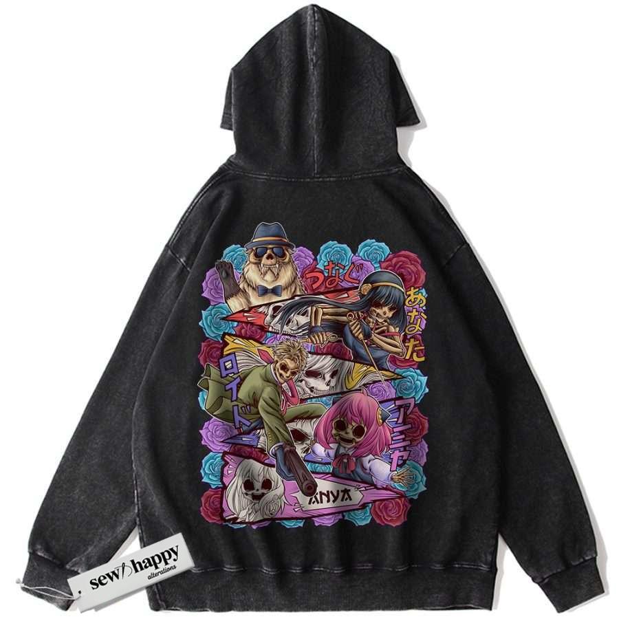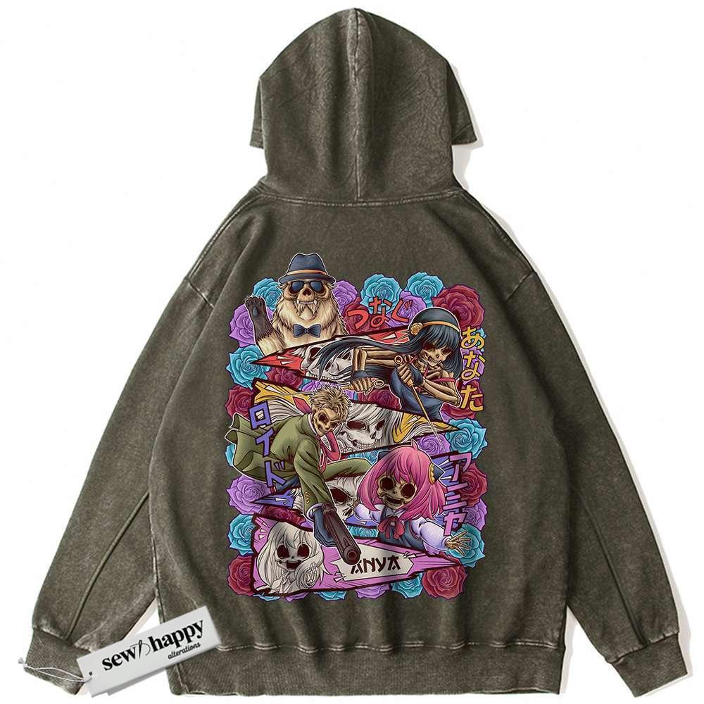 Wash Hoodie Skull Spy x Family Hoodie, Anime Hoodie, Vintage Hoodie