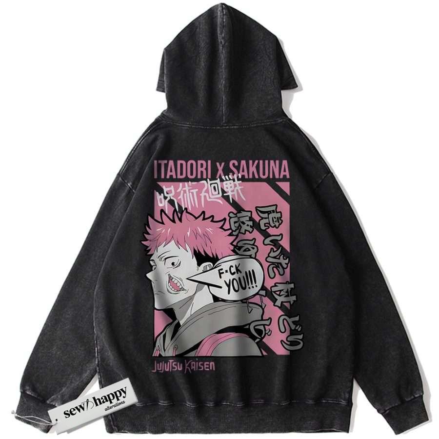Wash Hoodie Sukuna x Itadori Hoodie, Jujutsu Kaisen Hoodie, Anime Hoodie, Vintage Hoodie