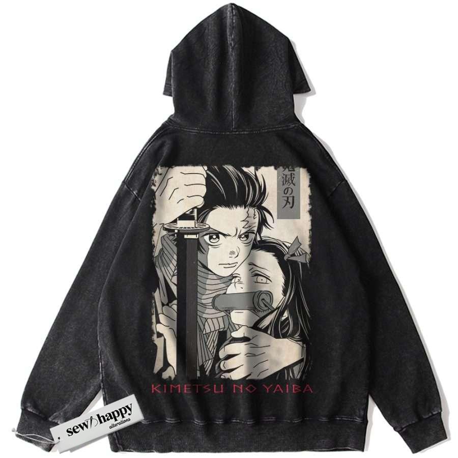 Wash Hoodie Tanjiro and Nezuko Hoodie, Demon Slayer Hoodie, Anime Hoodie, Vintage Hoodie