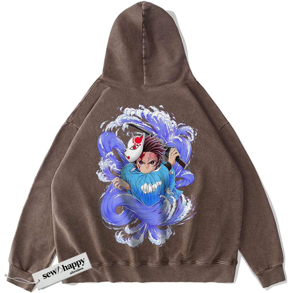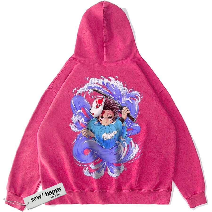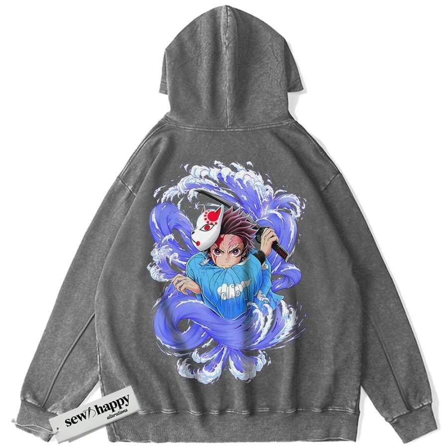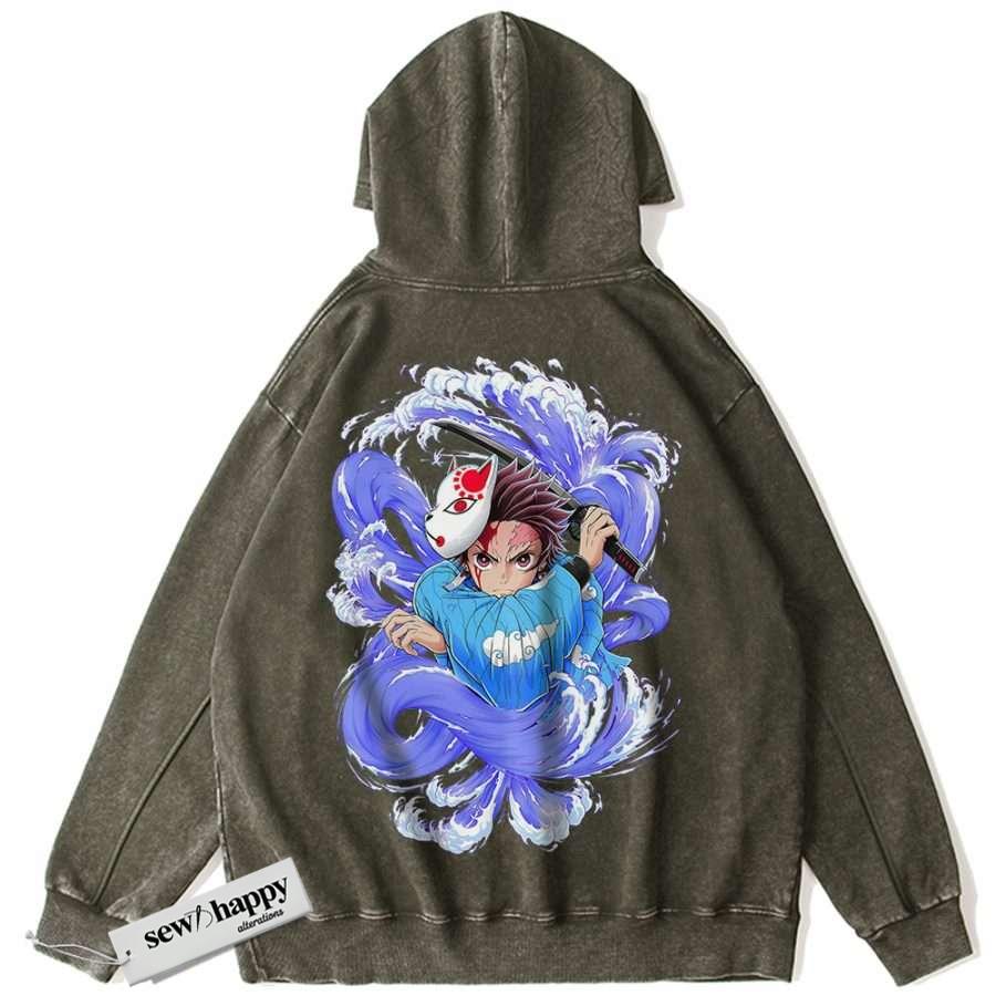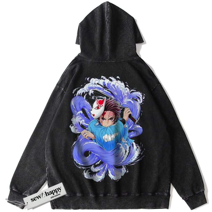 Wash Hoodie Tanjiro Kamado Hoodie, Demon Slayer Hoodie, Anime Hoodie, Vintage Hoodie