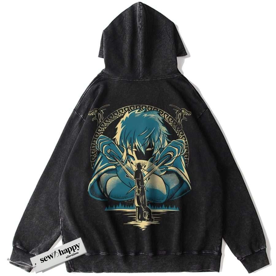 Wash Hoodie Thorfinn Hoodie, Vinland Saga Hoodie, Anime Hoodie, Vintage Hoodie