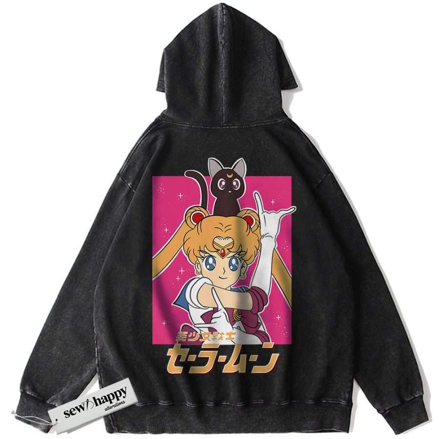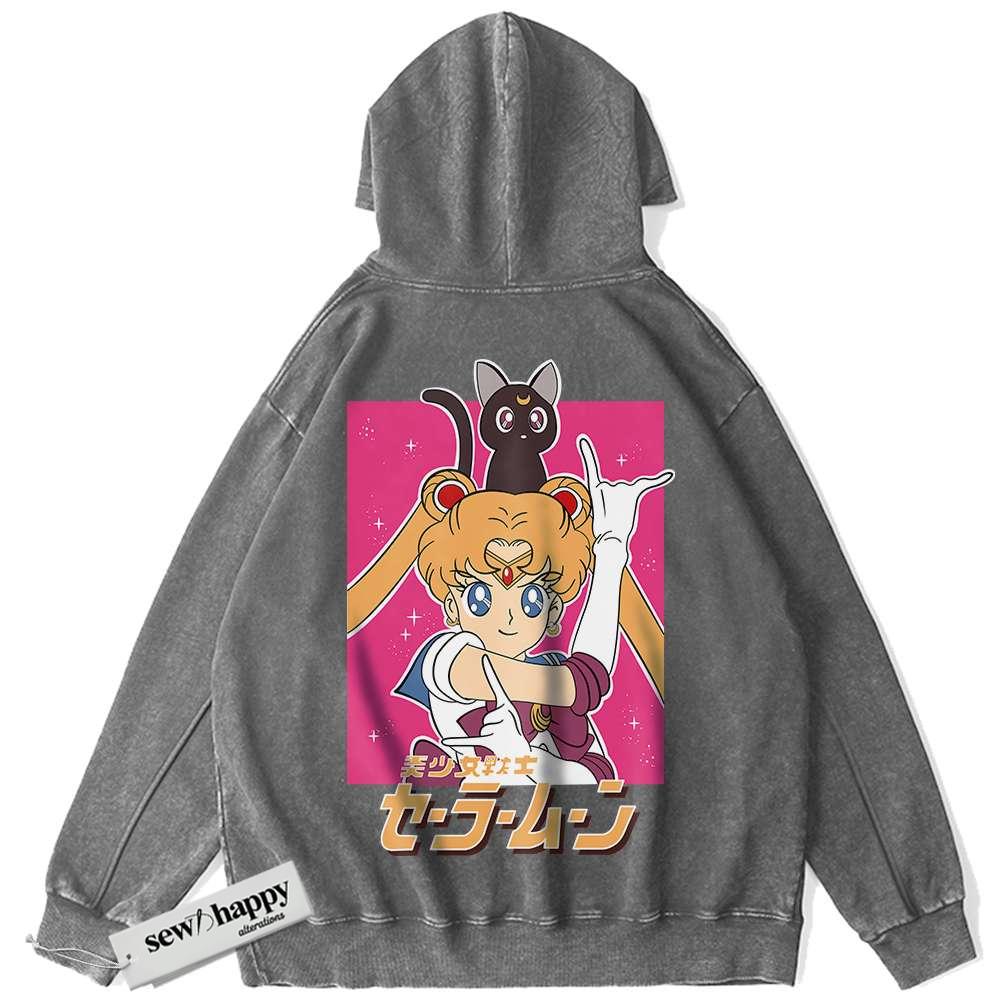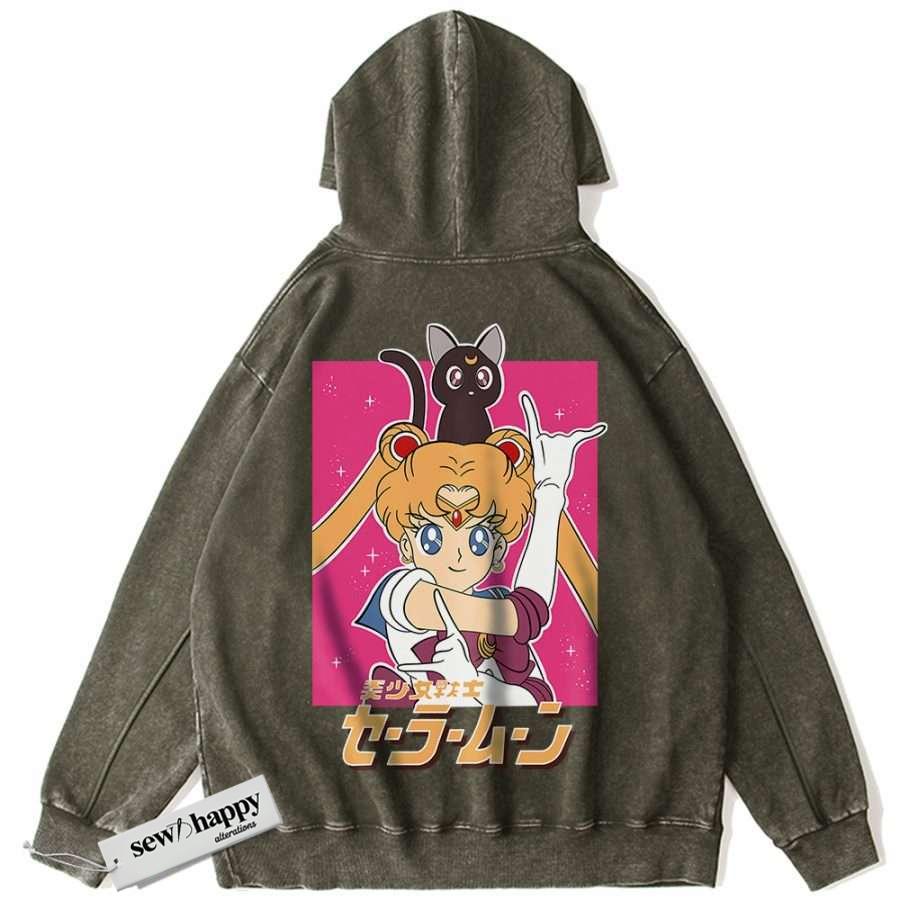 Wash Hoodie Usagi Tsukino Hoodie, Sailor Moon Hoodie, Anime Hoodie, Vintage Hoodie