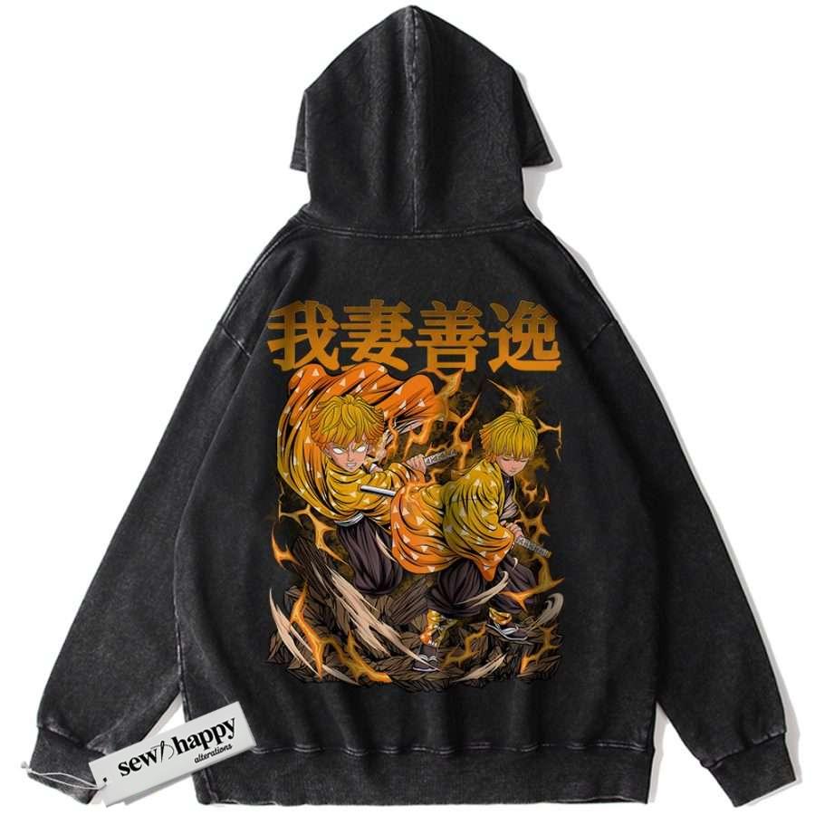 Wash Hoodie Zenitsu Agatsuma Hoodie, Demon Slayer Hoodie, Anime Hoodie, Vintage Hoodie