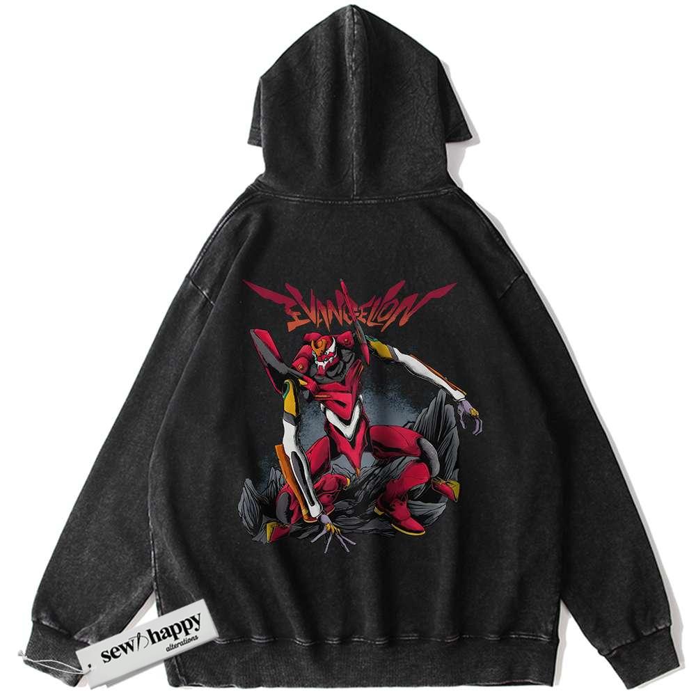 Wash Hoodie Eva-02 Hoodie, Neon Genesis Evangelion Hoodie, Anime Hoodie, Vintage Hoodie