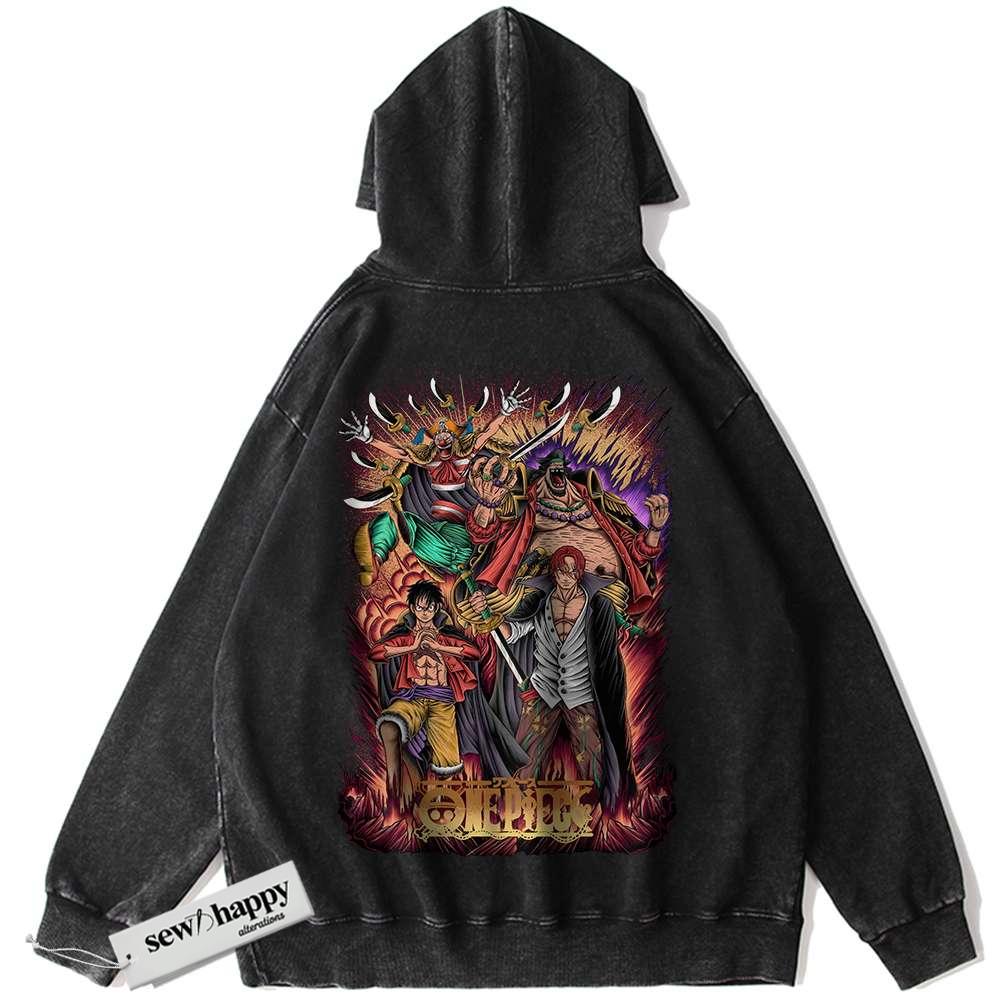 Wash Hoodie Four Emperors One Piece Hoodie, Anime Hoodie, Vintage Hoodie