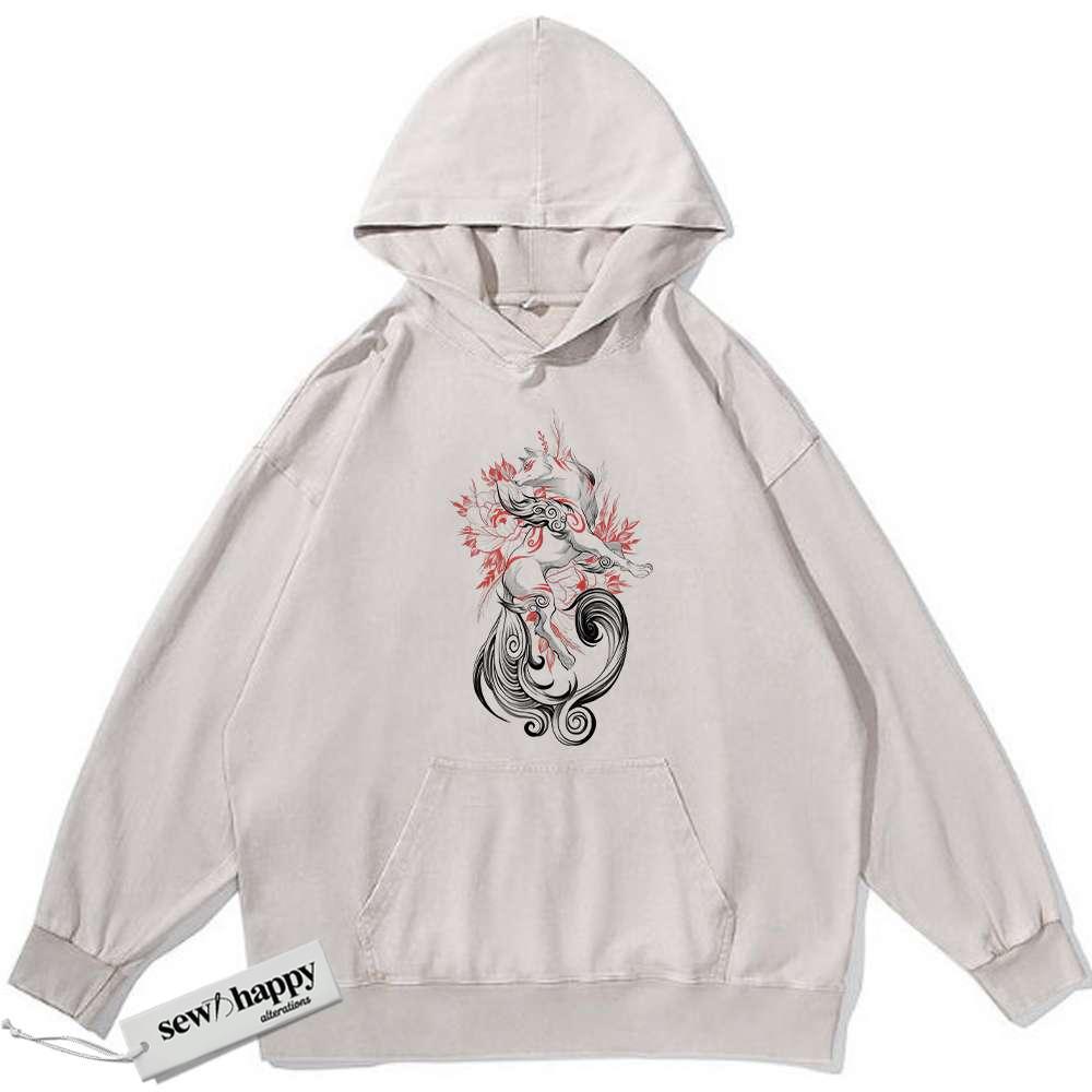 Wash Hoodie Amaterasu Hoodie, Okami Hoodie, Game Hoodie, Vintage Hoodie