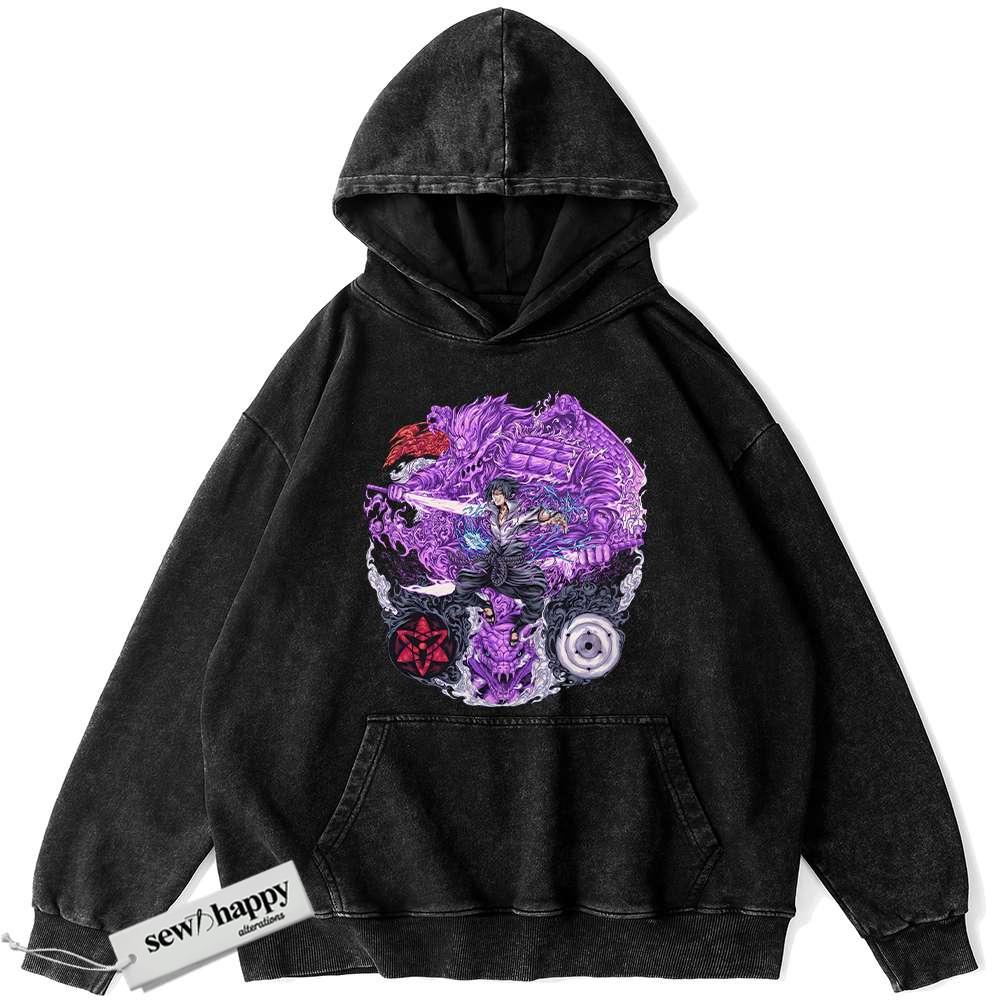 Wash Hoodie Sasuke Uchiha Hoodie, Naruto Hoodie, Anime Hoodie, Vintage Hoodie