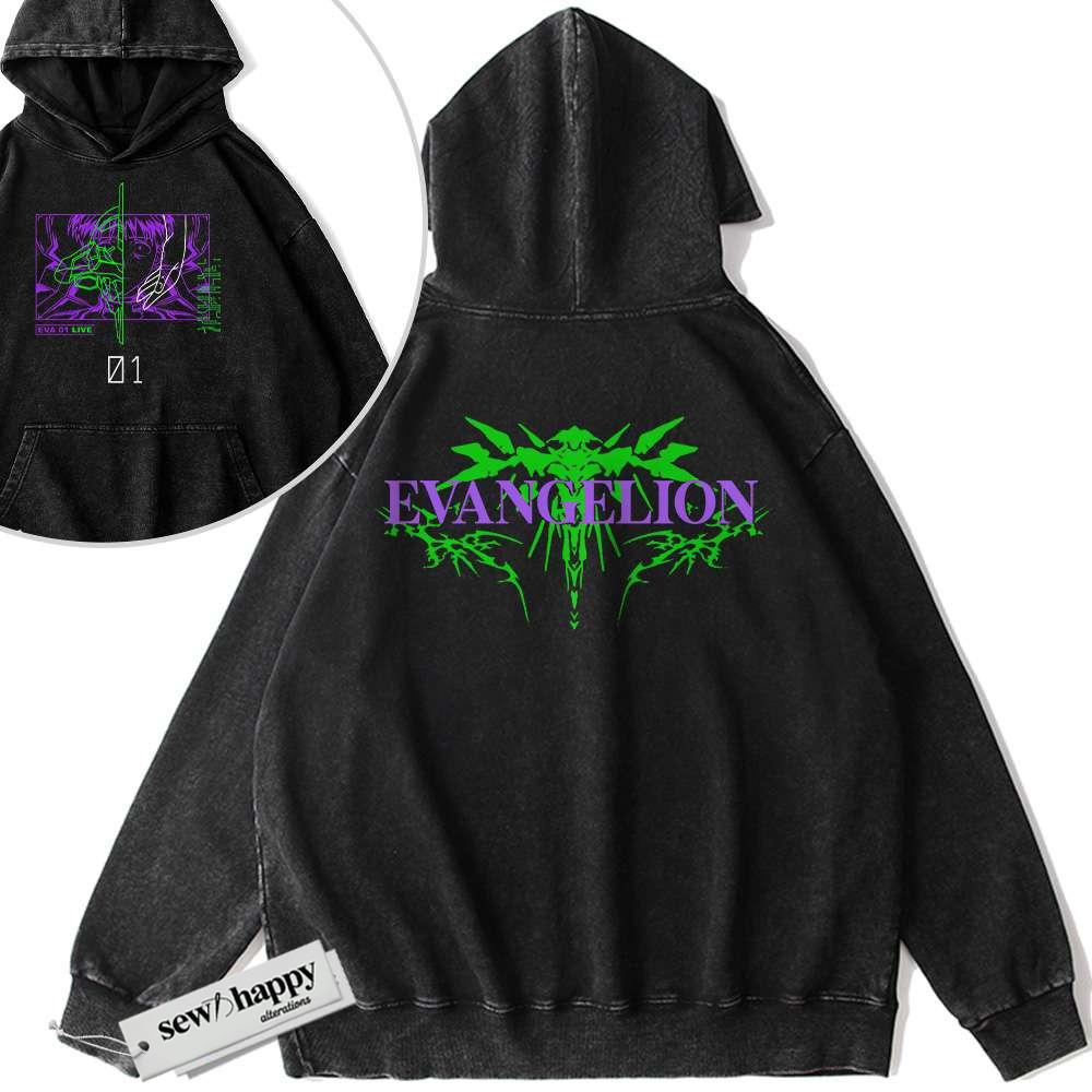 Wash Hoodie Unit-01 Shinji Ikari Hoodie, Neon Genesis Evangelion Hoodie, Anime Hoodie, Vintage Hoodie 2-Sided
